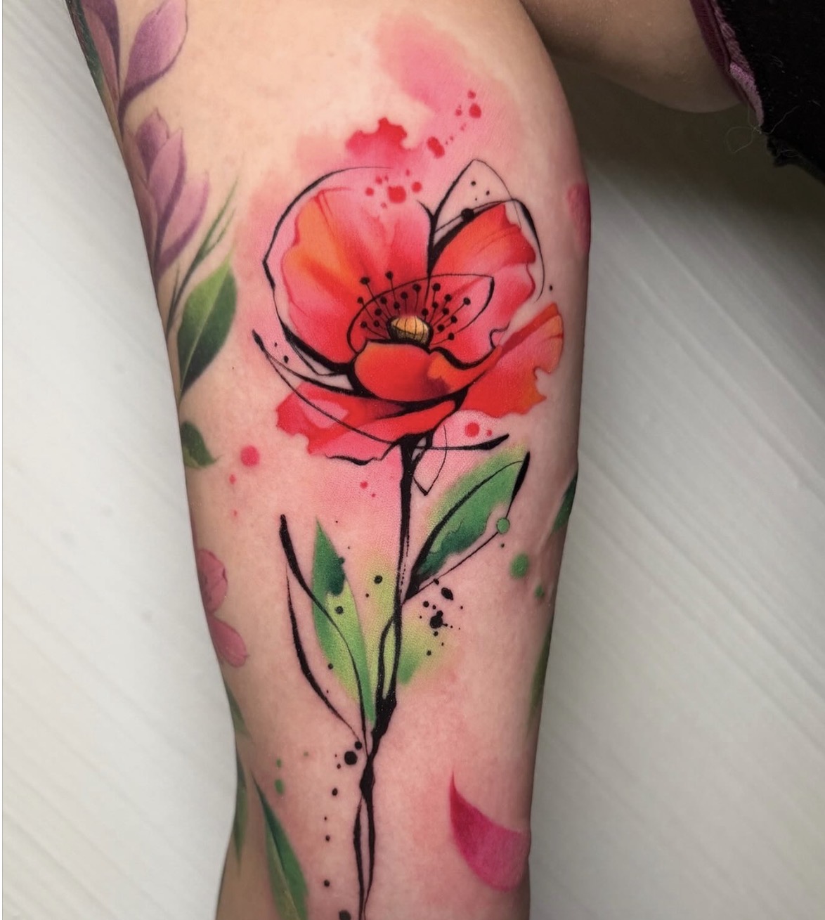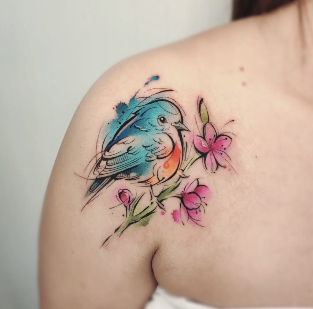 El diseño en acuarela tattoo requiere una visión diferente a otros estilos. Aquí la composición es más libre, pero igualmente estructurada.